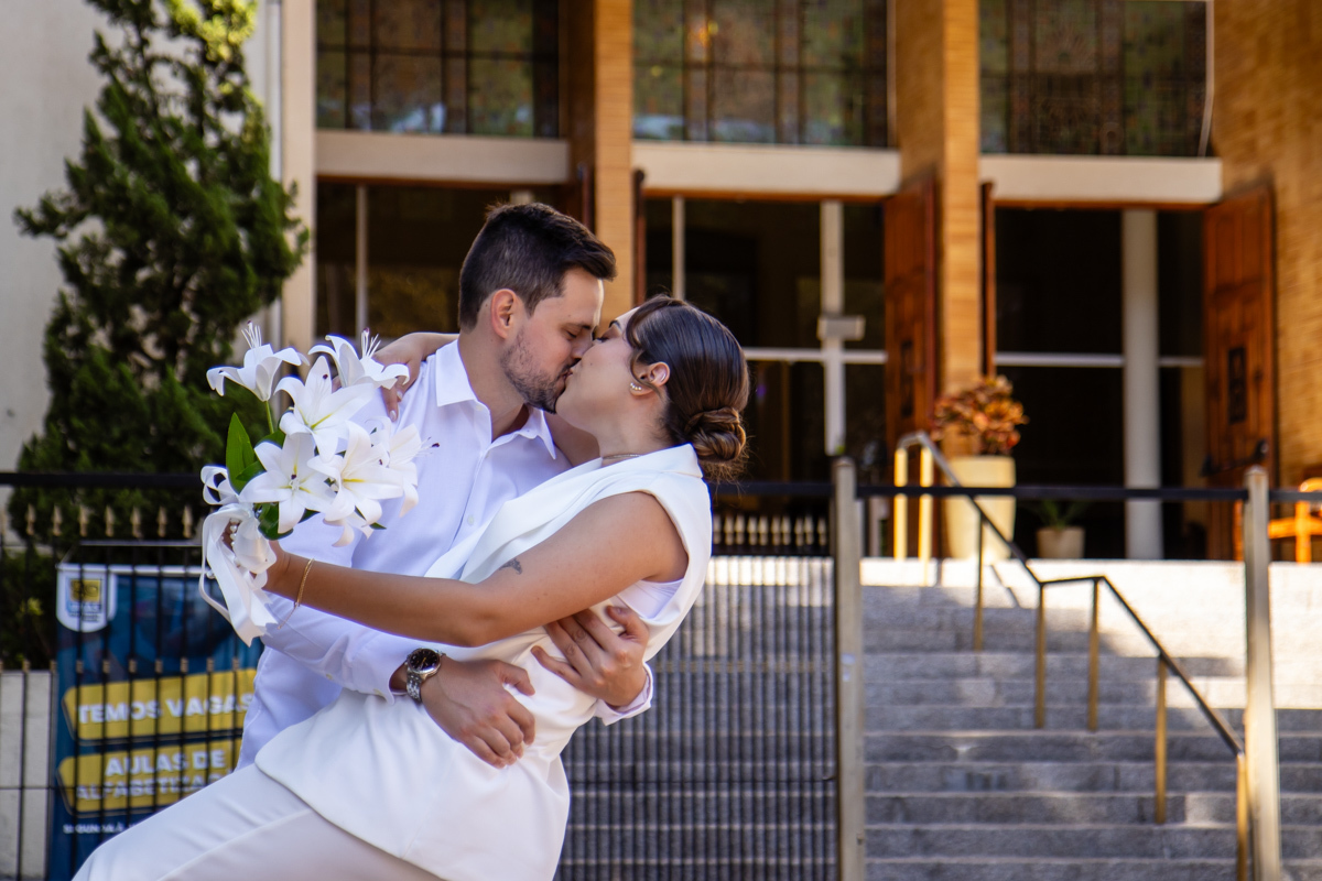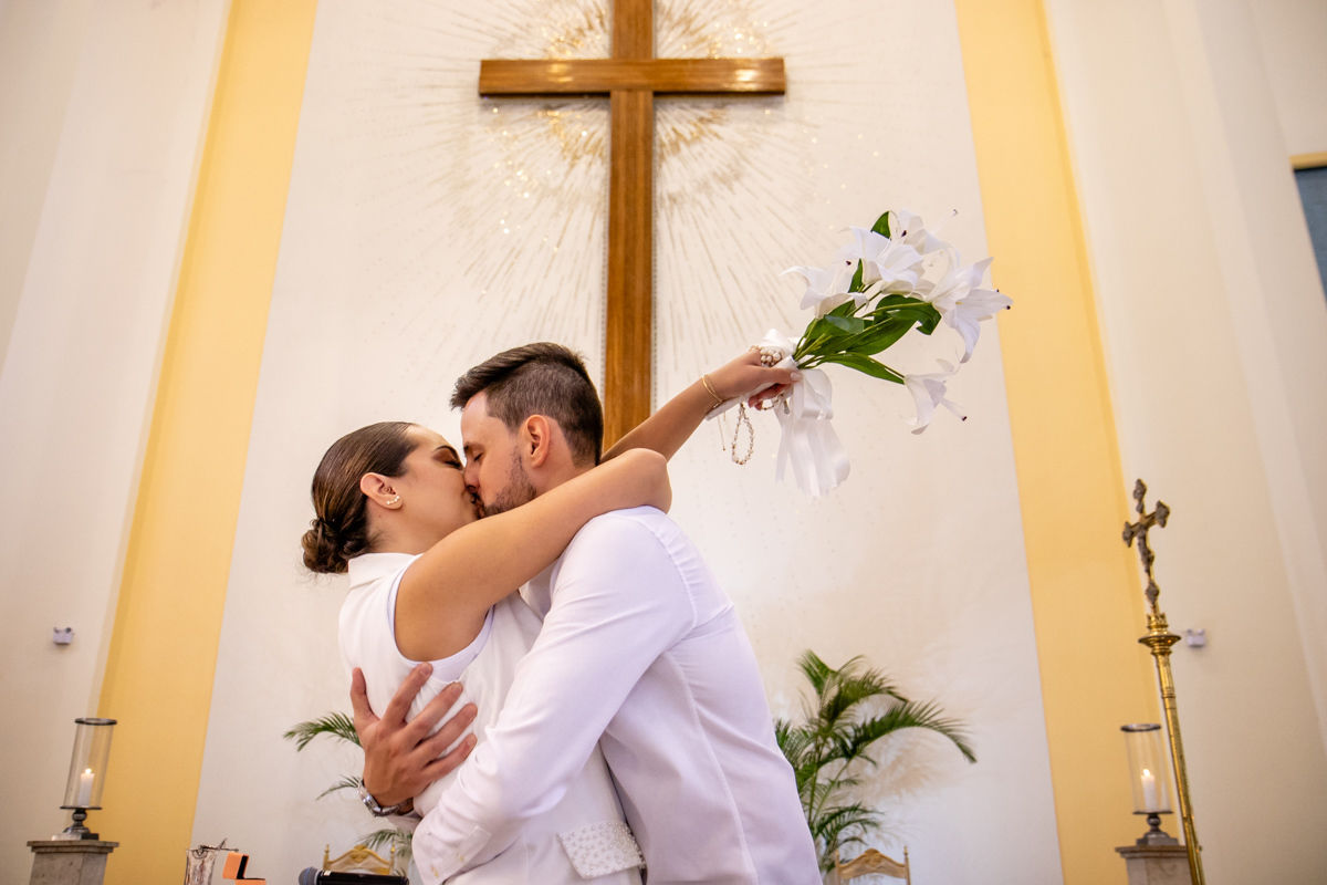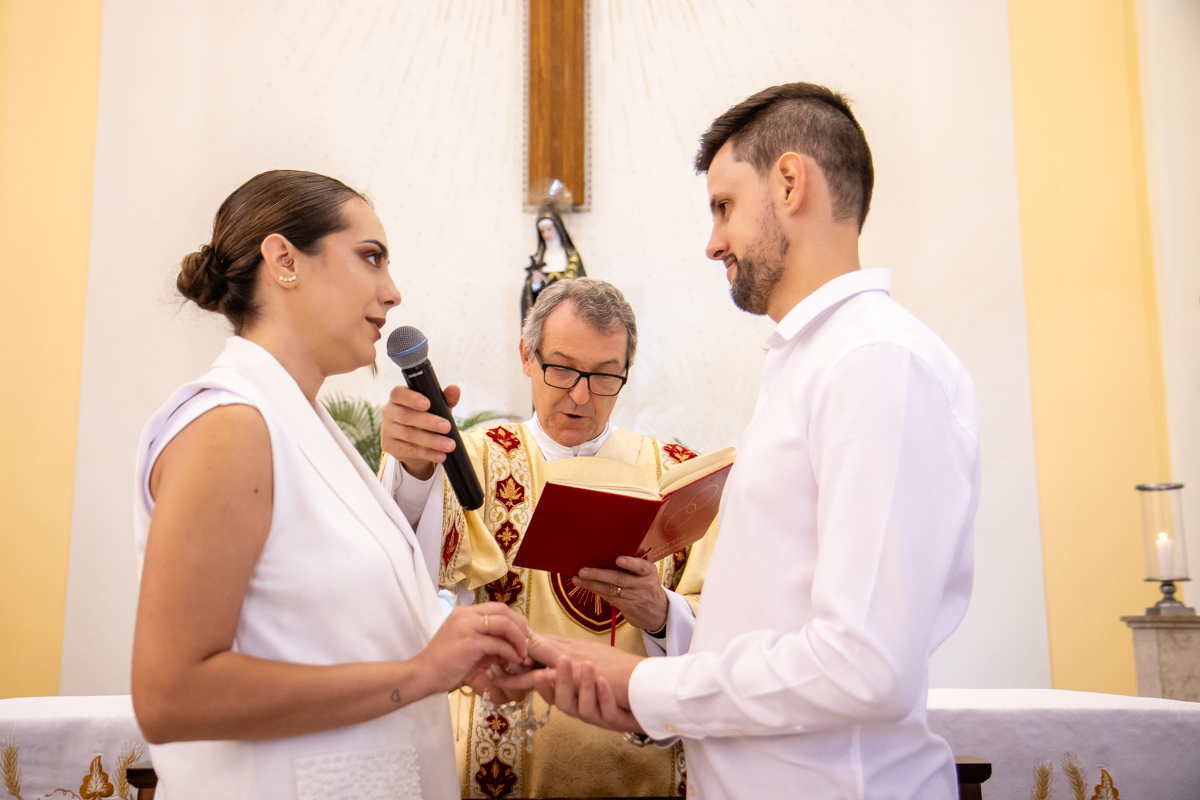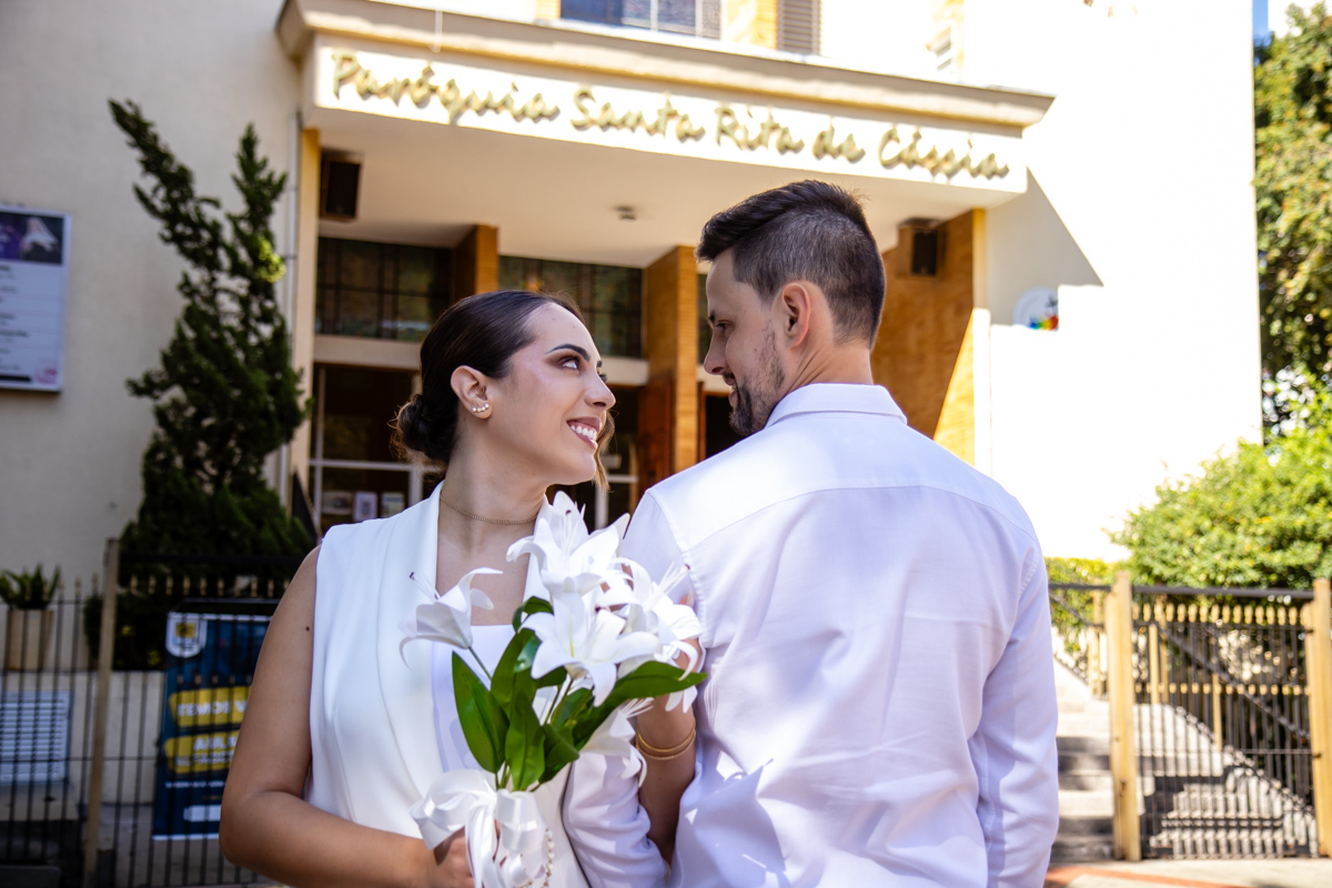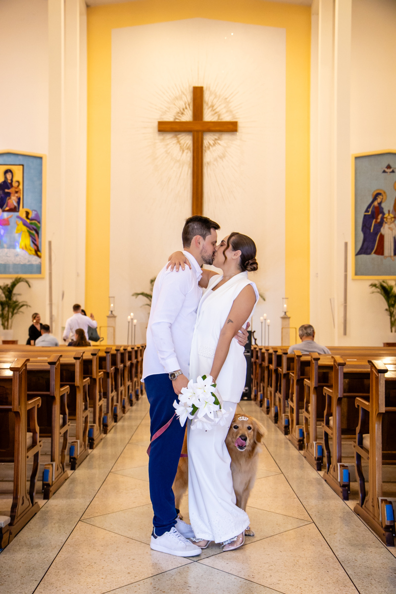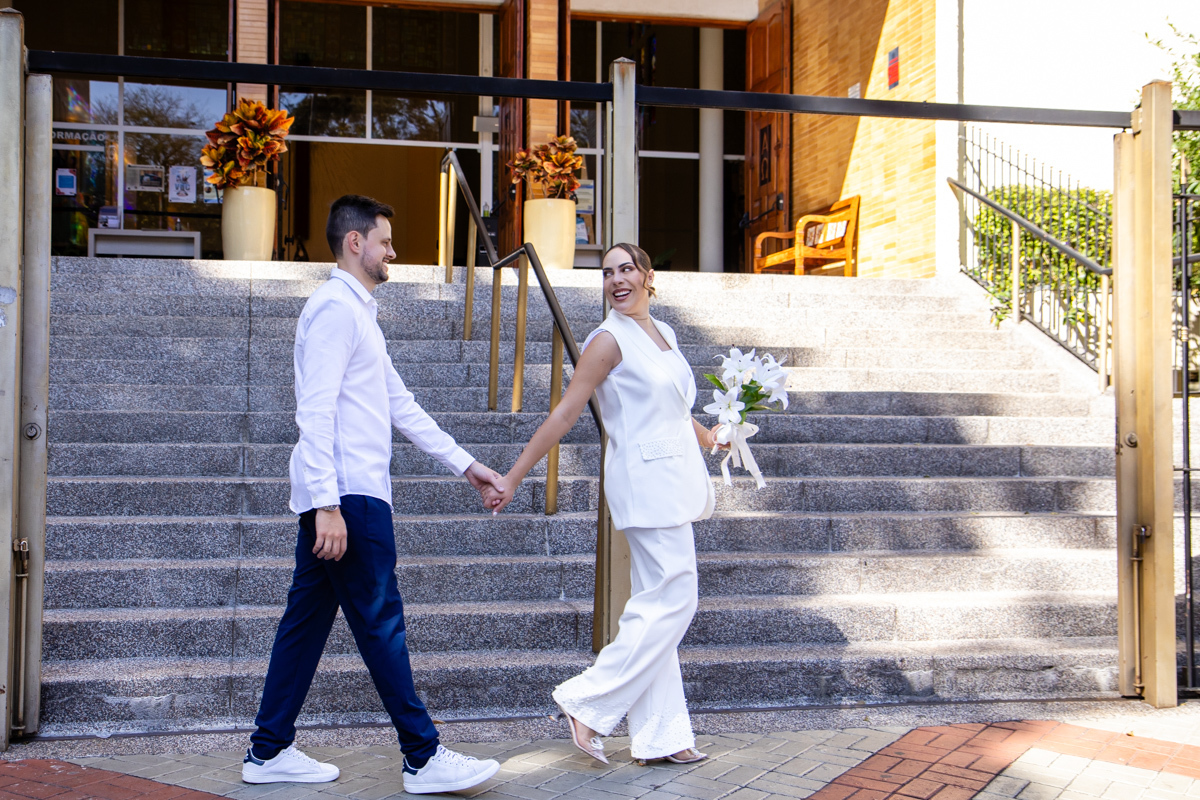 Do cartório à igreja, cada detalhe refletia a essência do casal: leveza, cumplicidade e alegria genuína. O cenário acolhedor e a simplicidade elegante transformaram o momento em algo único, onde cada olhar e gesto contava uma história.