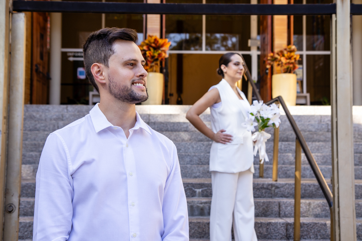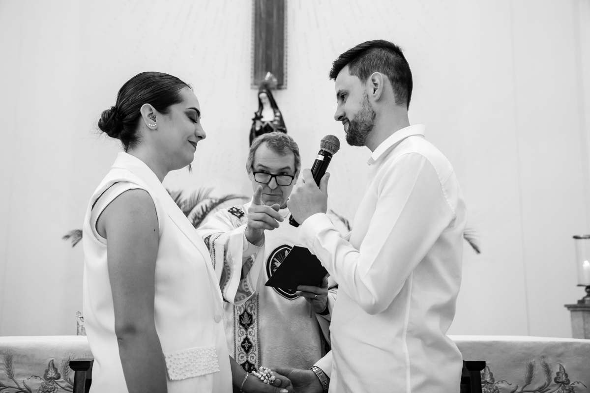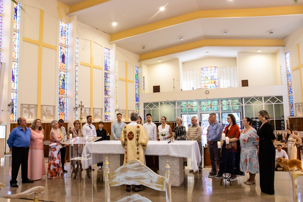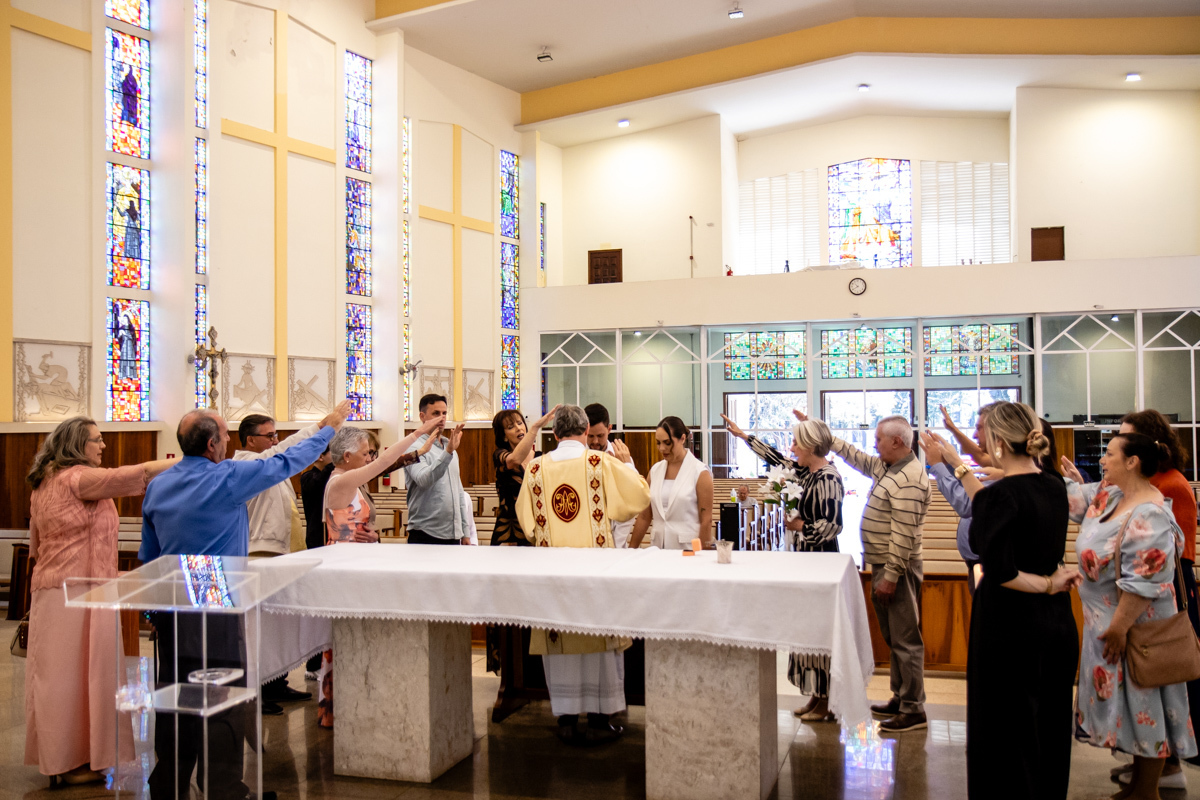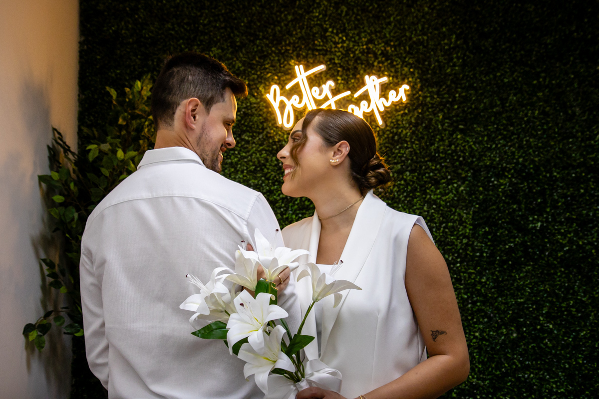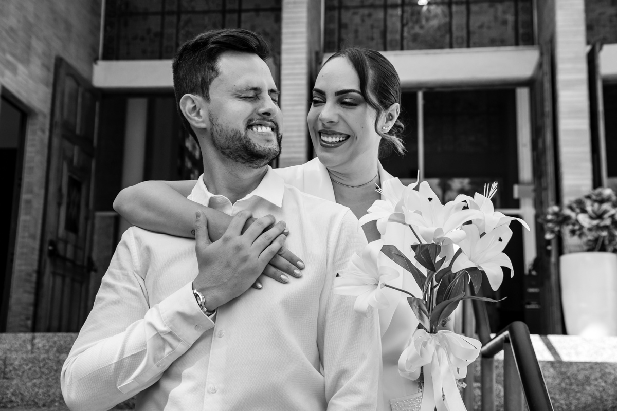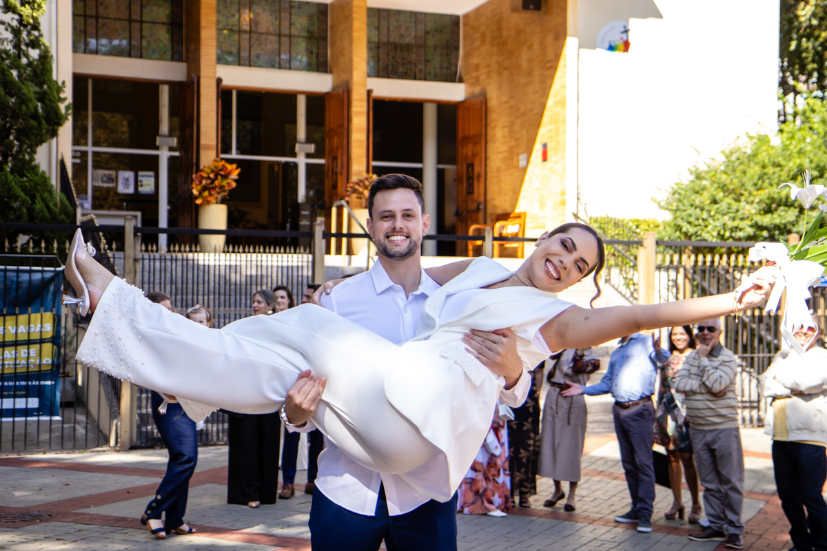 Do cartório à igreja, cada detalhe refletia a essência do casal: leveza, cumplicidade e alegria genuína. O cenário acolhedor e a simplicidade elegante transformaram o momento em algo único, onde cada olhar e gesto contava uma história.